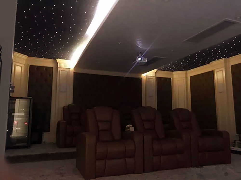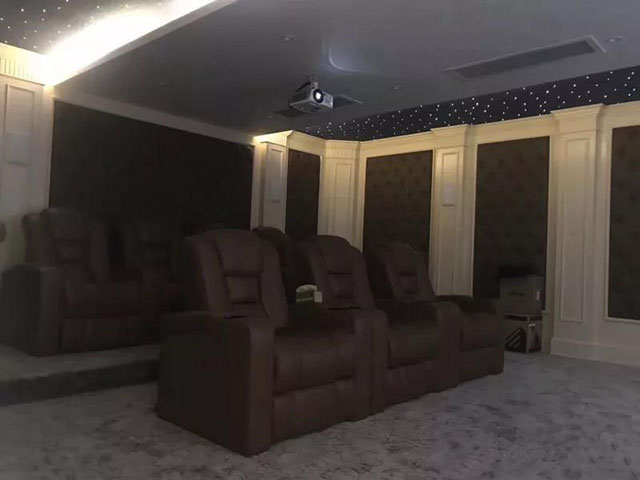 由于影音室空间较大,所以我们选择了3+4的双排座椅设计。
