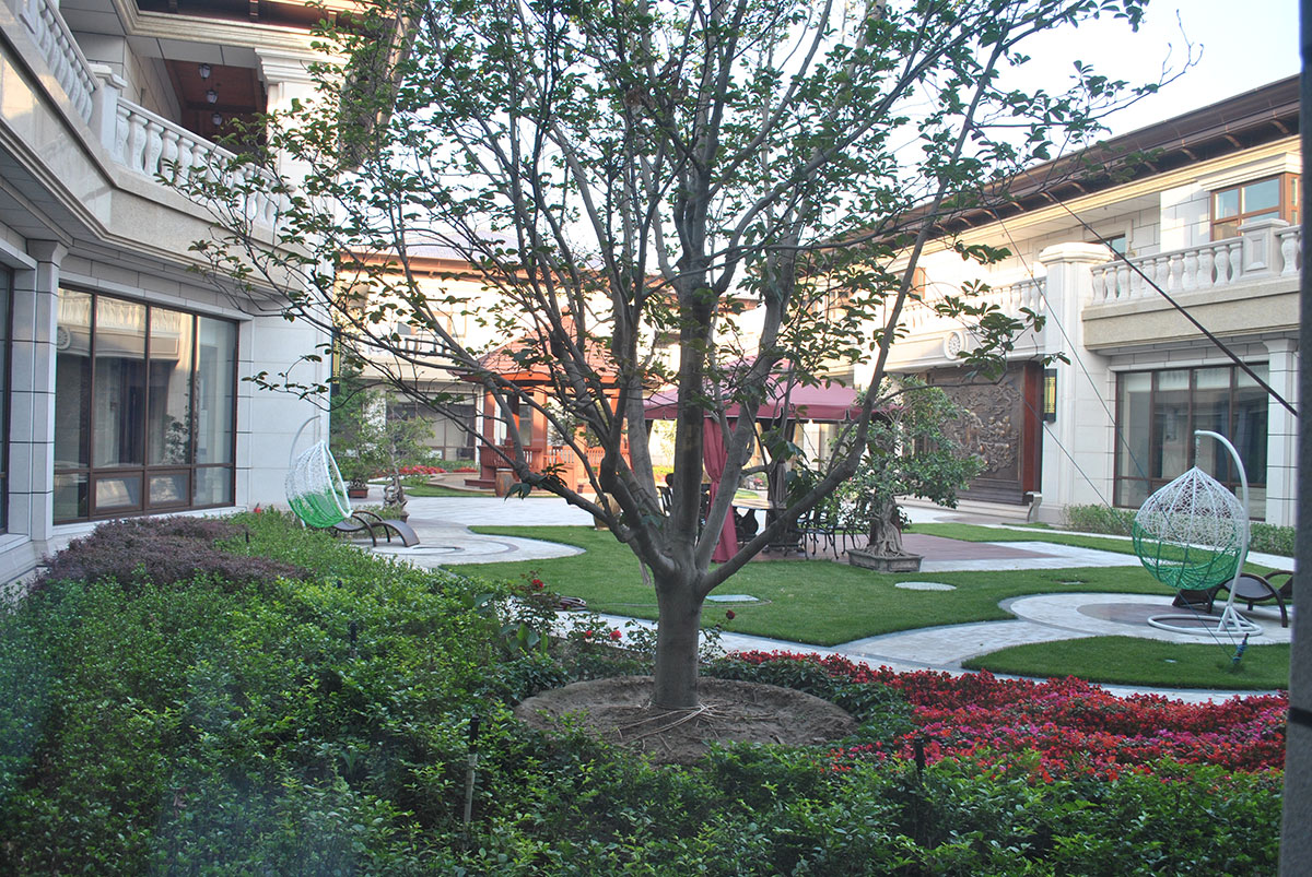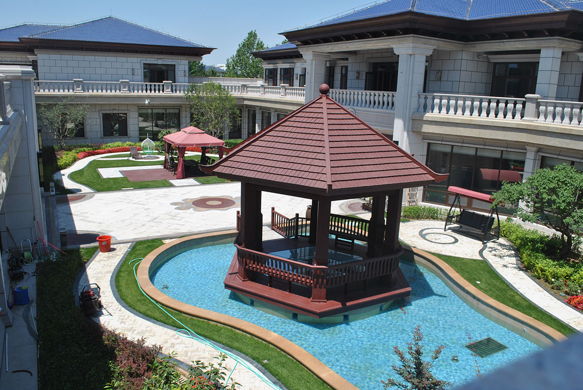 枝繁叶茂的绿色植被,古朴典雅的六角凉亭,让人初入别墅就感觉休闲惬意,同时又不失艺术气息。
