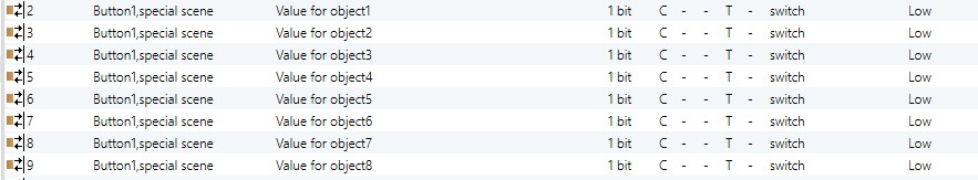 Value for object 1~8 |