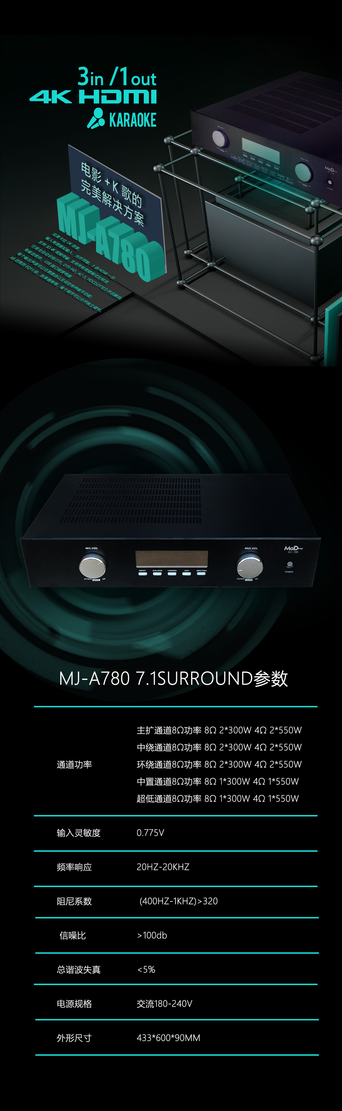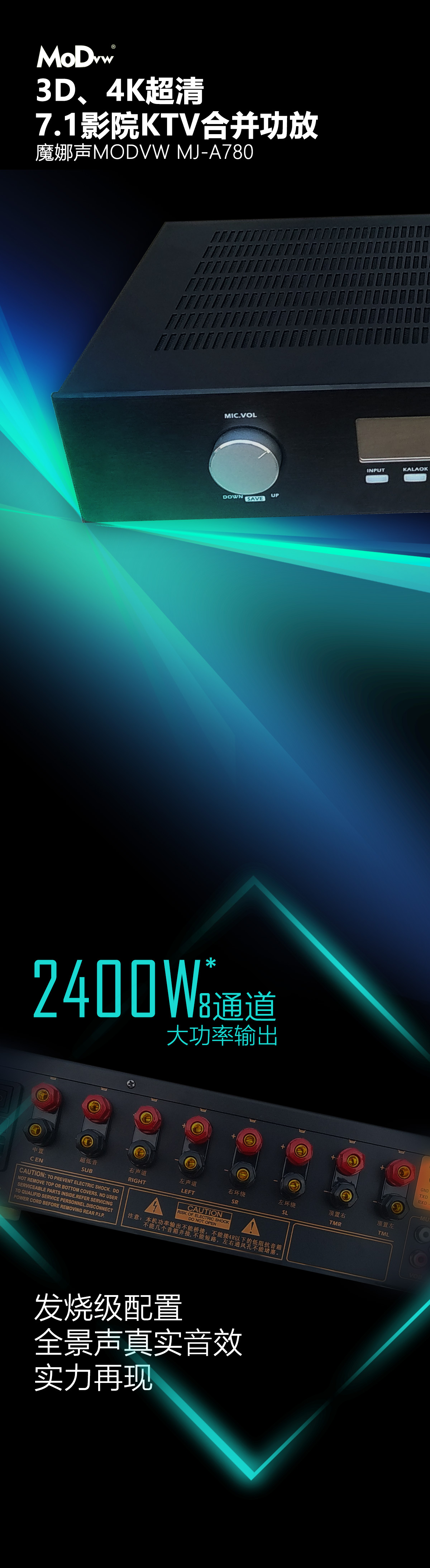3D4K超清7.1影院KTV合并功放魔娜声MODVW MJ-A780